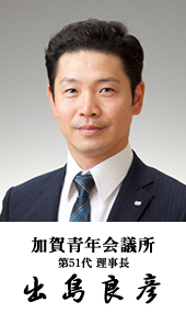 2015年度公益社団法人加賀青年会議所第51代理事長の出島良彦でございます。平素は公益社団法人加賀青年会議所の活動に対し、多大なるご理解とご支援を賜り厚く御礼申し上げます。