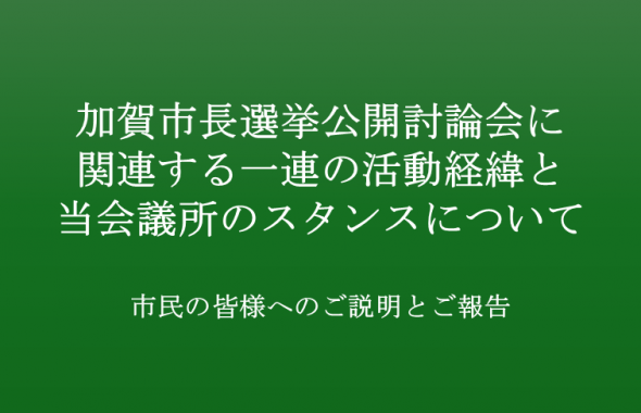 加賀市長選挙公開討論会に関連する一連の経緯と当会議所のスタンス、および事後の対応について